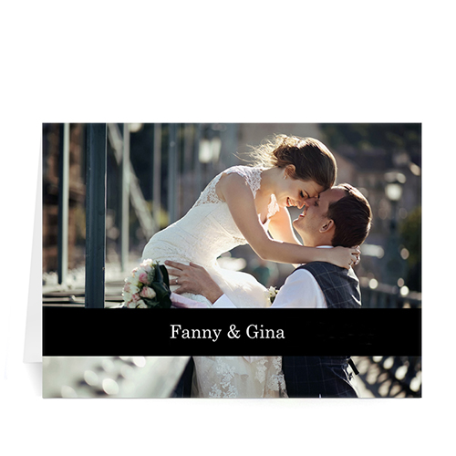 Tarjeta personalizadas de Boda con fotografía en color Negro Doblado Causal 5x7
